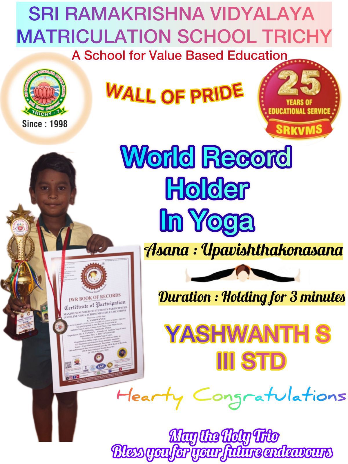 Sri Ramakrishna Vidyalaya seeks to eliminate this imbalance by focusing as much on "man making and character building and life giving”. The school imparts a holistic education, which prepares the children for various life situations rather than just a career.