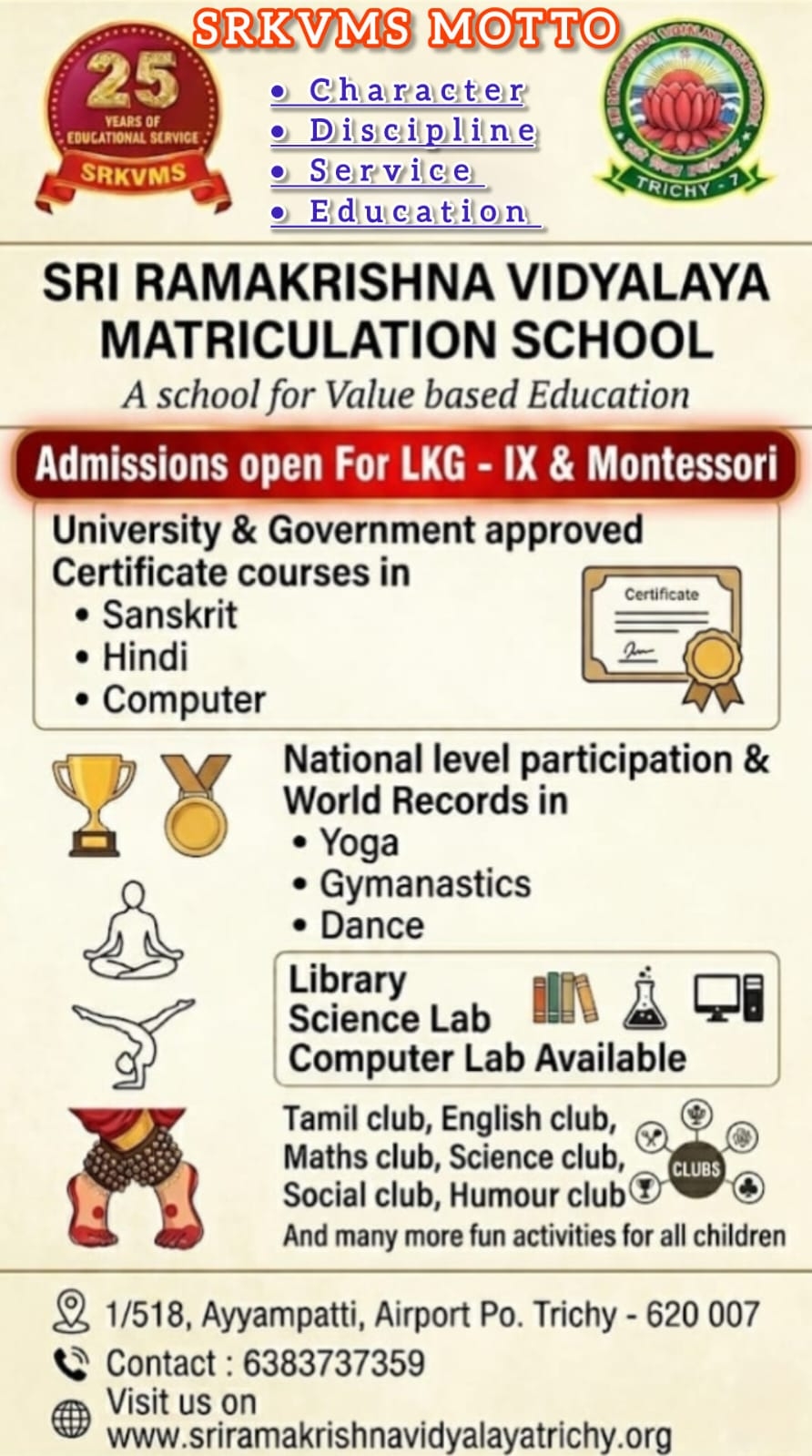Welcome to Sri Ramakrishna Vidyalaya Matriculation School, Trichy.